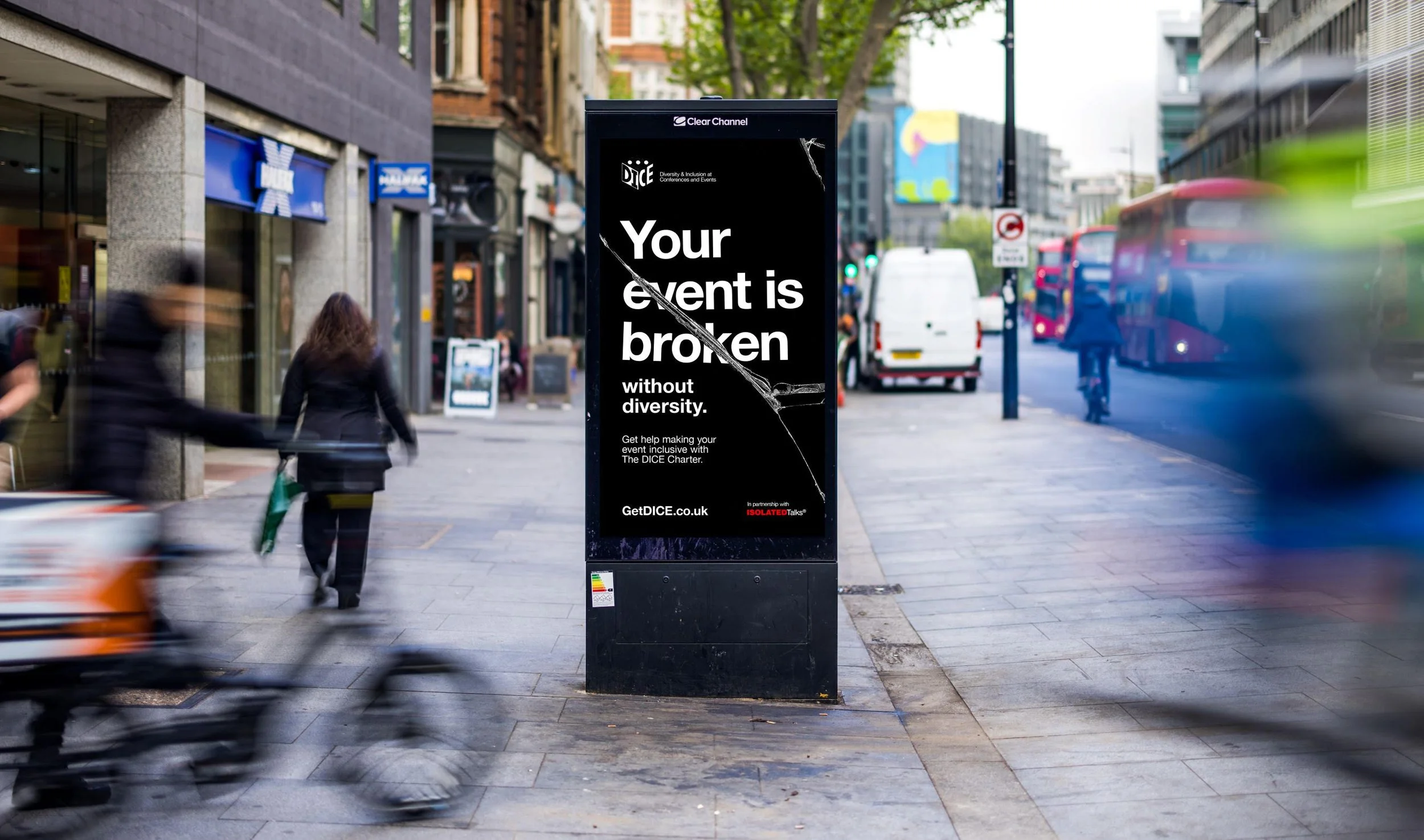 The ‘Your Event Is Broken Without Diversity’ campaign will run in partnership with ISOLATED Talks® (an initiative from creative agency ...Gasp!) and will run across national digital billboards donated by Clear Channel.